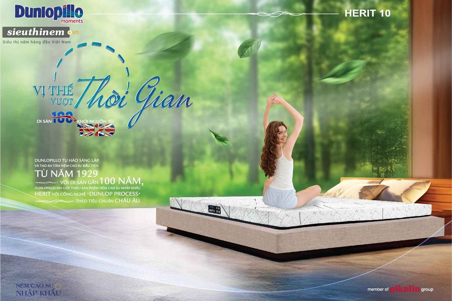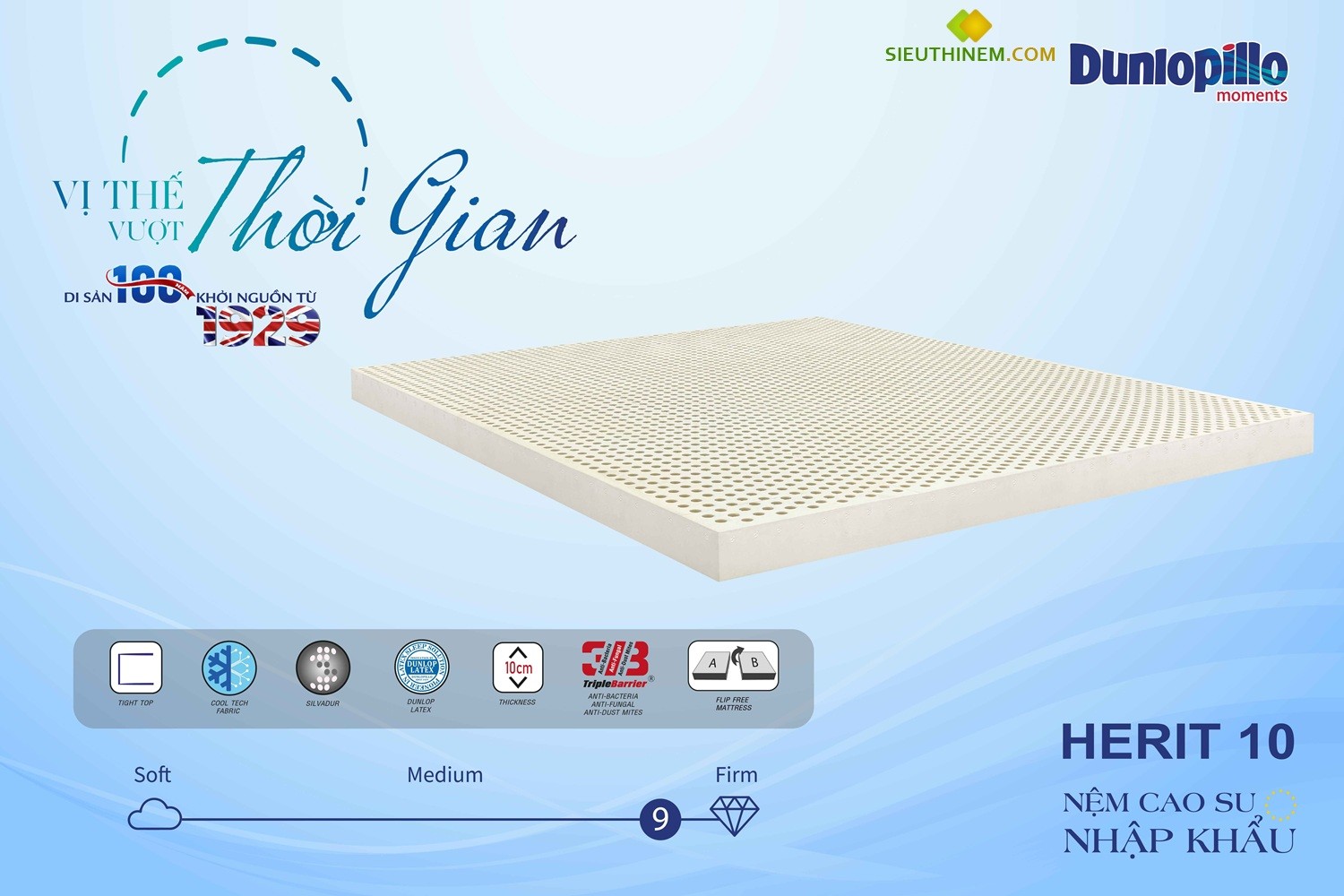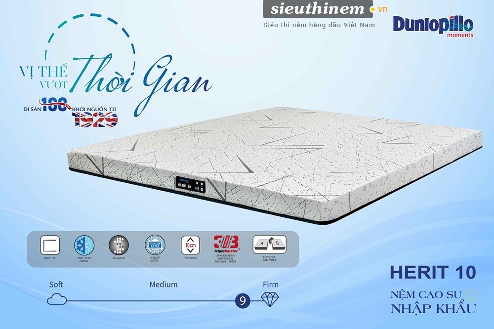 Dunlopillo tự hào là nhà sáng lập và tiên phong trong việc tạo ra nệm cao su đầu tiên từ năm 1929. Với di sản gần một thế kỷ, chúng tôi trân trọng giới thiệu sản phẩm nệm cao su nhập khẩu Herit, được chế tạo bằng công nghệ "Dunlop Process" tiên tiến, tuân thủ nghiêm ngặt các tiêu chuẩn chất lượng Châu Âu.